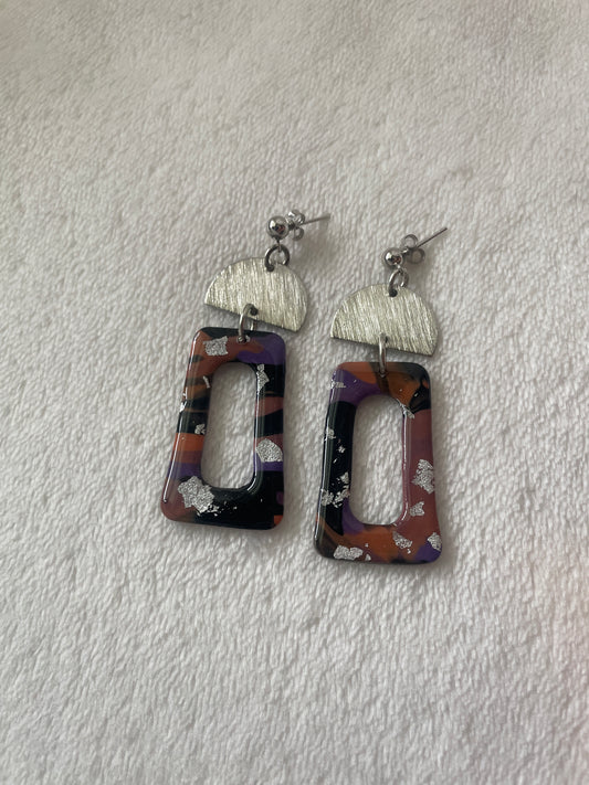 Black, orange, and purple rectangle dangle earrings | Halloween earrings