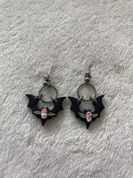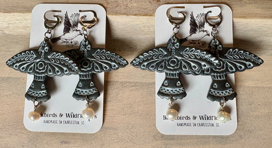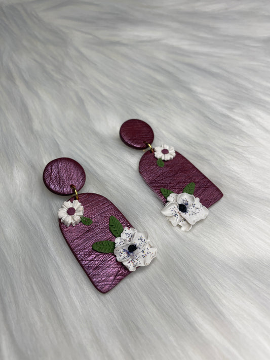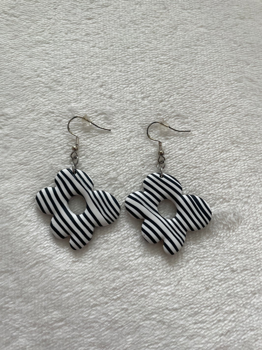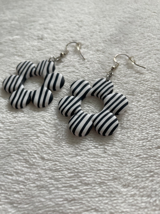Black & white floral daisy dangle earrings | Halloween Earrings