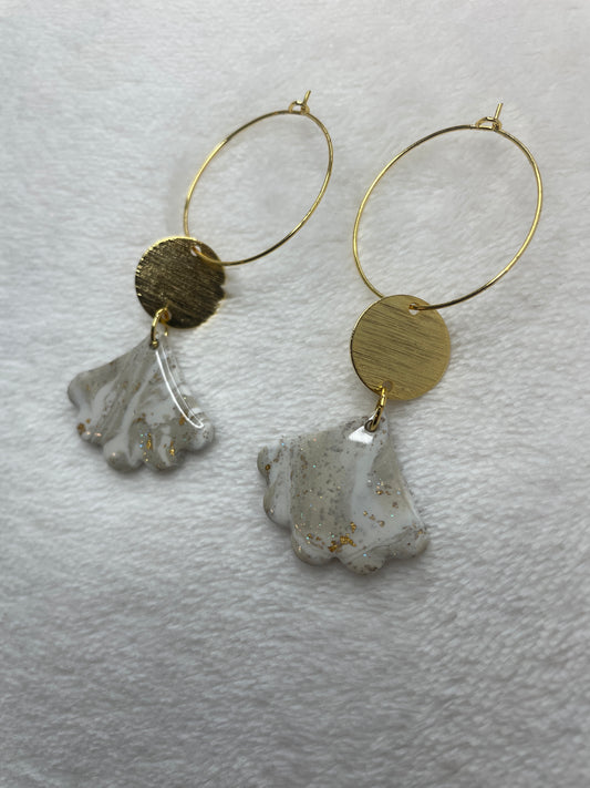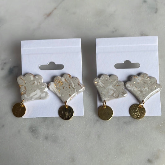 White, Gold, and Gray Charleston Pluff Mud Scallop Dangles