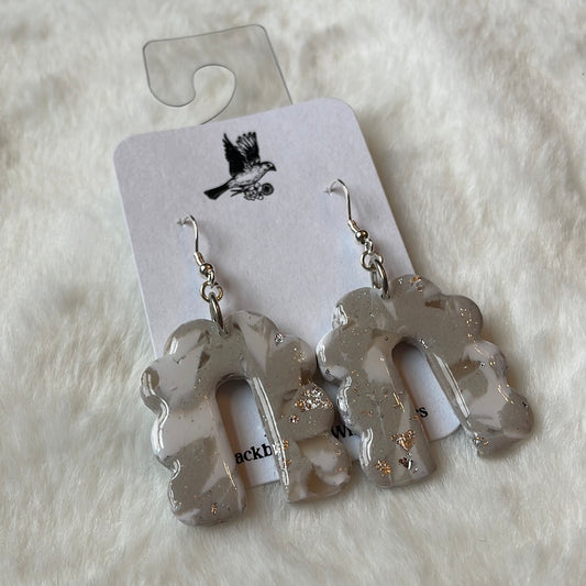 White, Silver, Translucent, and Gray Charleston Pluff Mud Arch Dangles