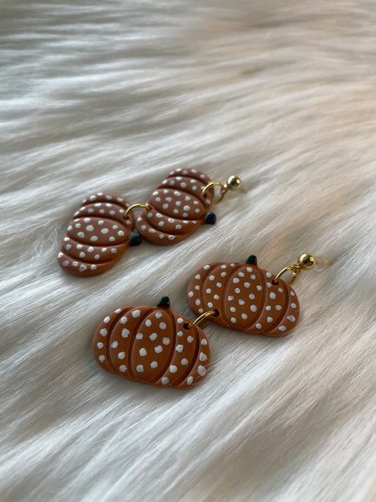Polka dot pumpkin dangle earrings | Halloween earrings
