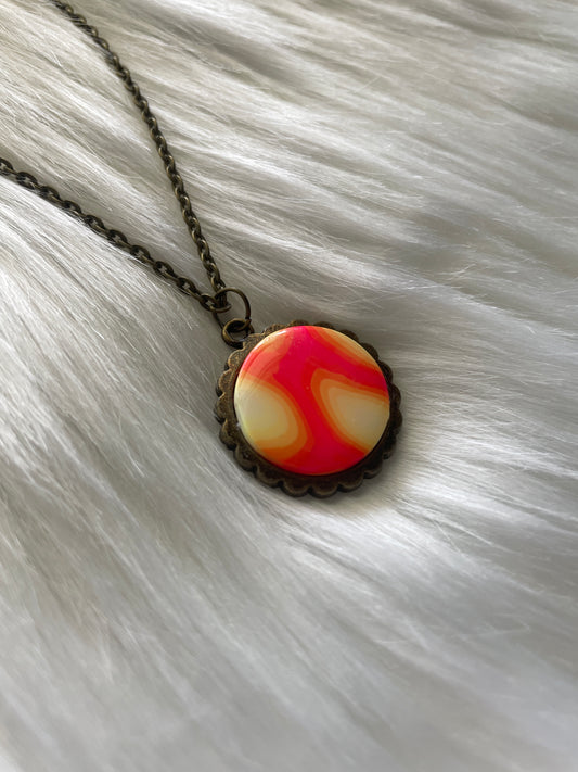 Iridescent round charm necklace