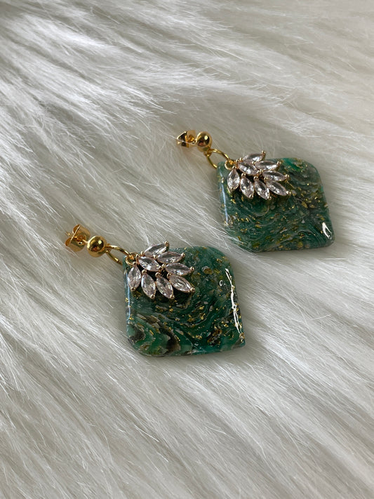 Green diamond stained glass dangles