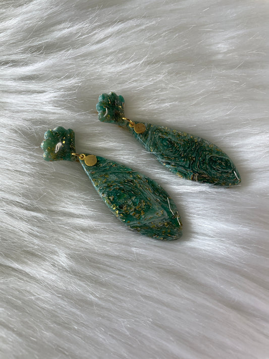 Green teardrop stained glass dangles