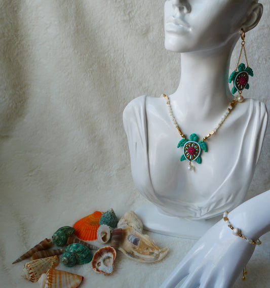 Coastal Reverie is a celebration of sun-drenched textures and delicate details inspired by the gentle rhythm of the ocean. Each piece weaves together natural elements — from woven basketweave and lace to shimmering shells and oceanic charms — capturing the essence of summer’s soft light and playful sophistication. This collection invites you to embrace a serene yet spirited escape, where timeless elegance meets seaside whimsy.